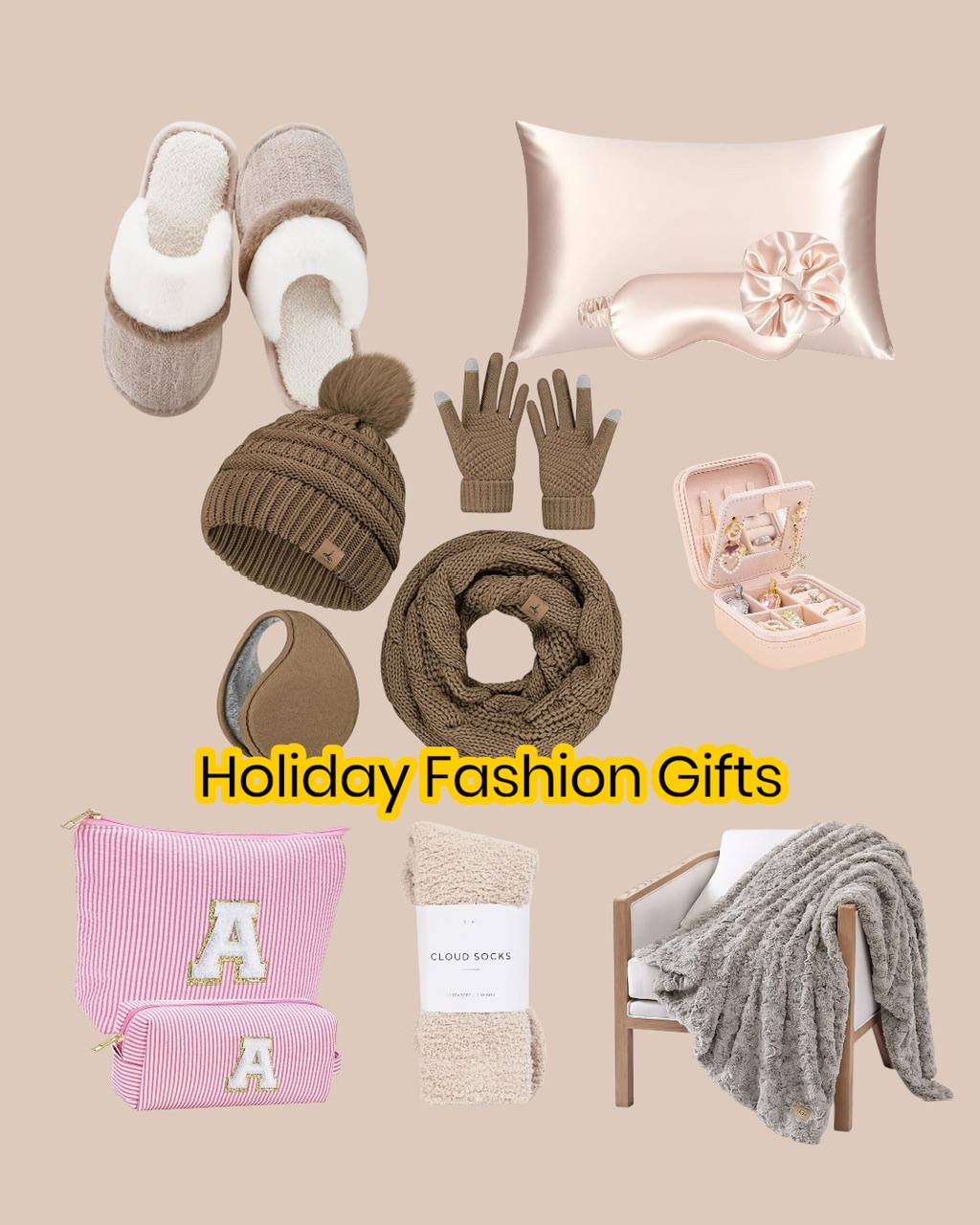 Chic winter accessories, Jewelry organizer, lovely make up bags, and everyday staples they’ll wear long after the holidays. Perfect for the fashion lover on your list (or to treat yourself!).