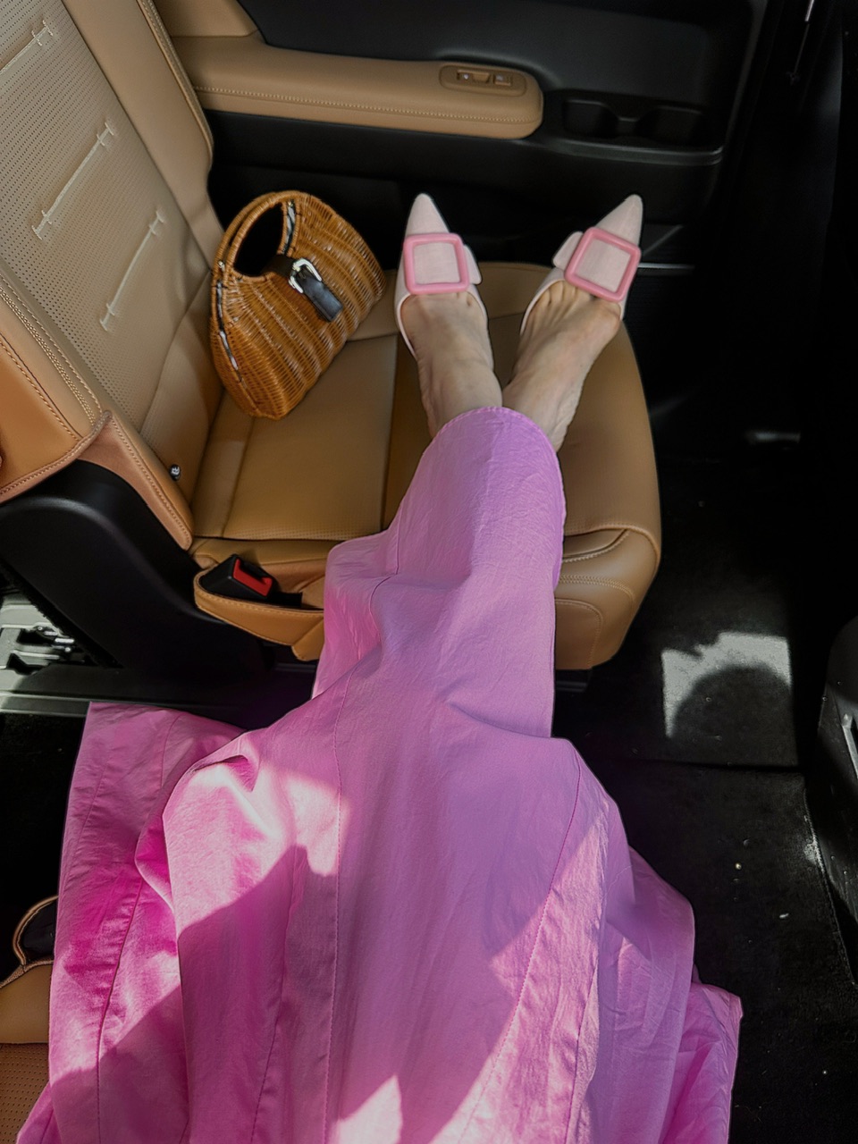 Styling from the backseat reminds me that fashion doesn’t have to be complicated. Sometimes, it’s just about choosing one beautiful bag, one pair of shoes, and letting everything else fall into place.
