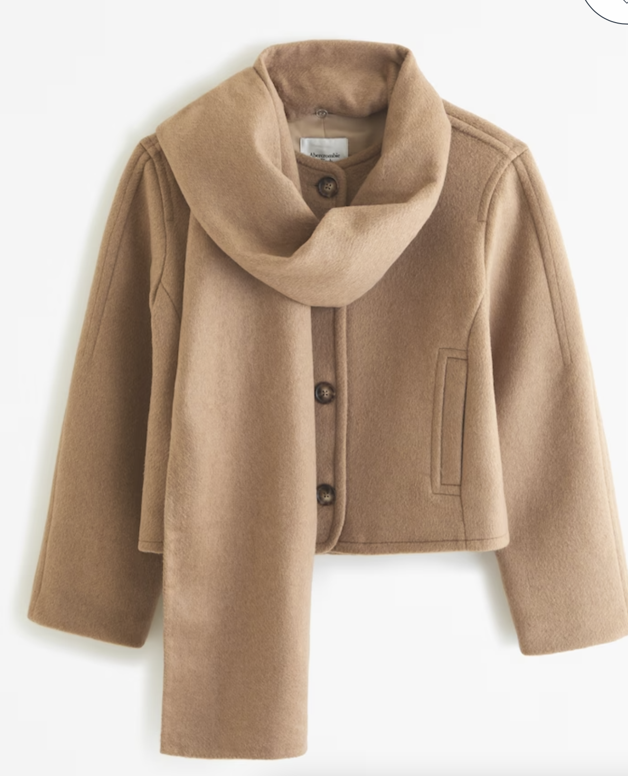 Removable Scarf Double-Cloth Wool-Blend Jacket