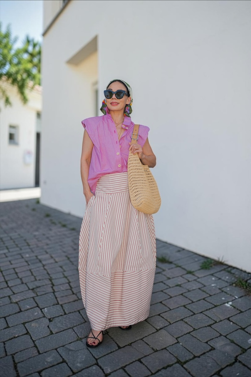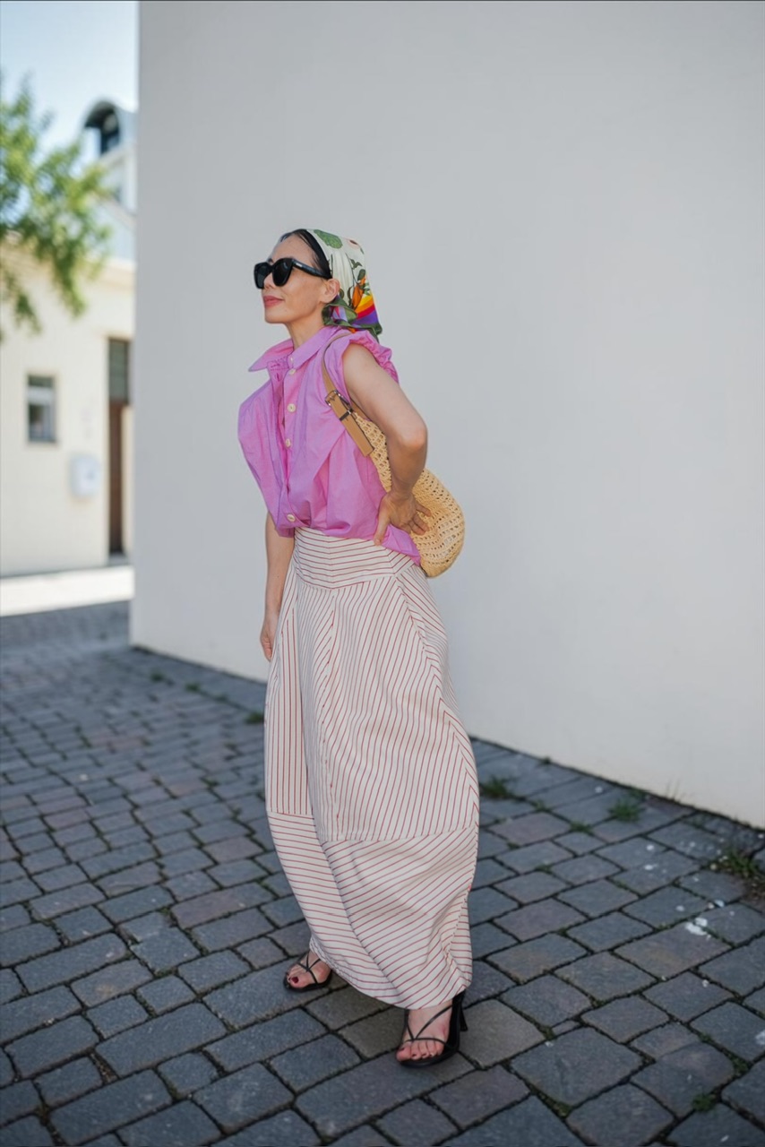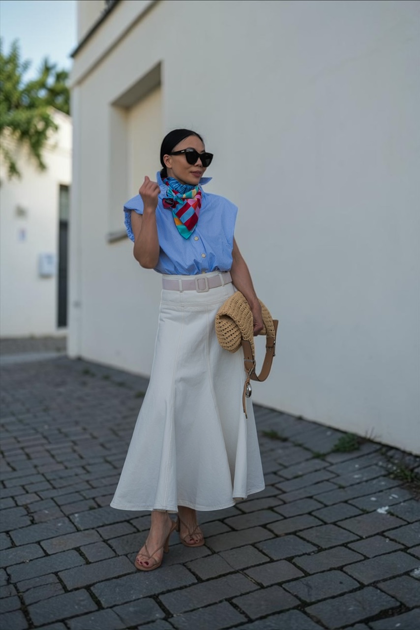This summer, I found myself reaching for silk scarves again and again, not just as an accessory, but as a styling language. A way to add color, personality, and that subtle “finished” feeling to even the simplest looks.